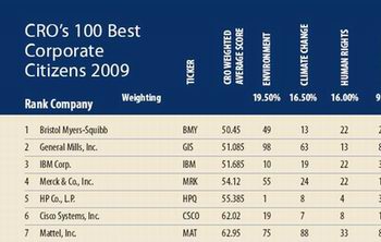 100 Best Corporate Citizens 2009 “2009年度100家最佳企业公民”由CRO杂志(www.thecro.com)从一千多家美国最大的上市公司中评选得出,这已经是举办以来的第10个排行榜。