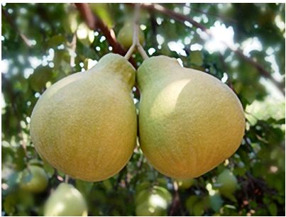 如果您过年前后去梅州,您会看到许多家户喜欢摆放如下图的并蒂金柚;代表着“好事成双”。