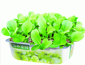 图中这种小菜园真的很小,像是一个月饼盒那么大。它的培养土由泥炭、草木灰、蛭石、珍珠岩、椰糠以及有机肥等精制科学调配而成(所有材料源于自然),因此,在它的种植过程中不需要施肥;浇水时,保水层能蓄水,即使没有按时浇水也能起到缓解作用。