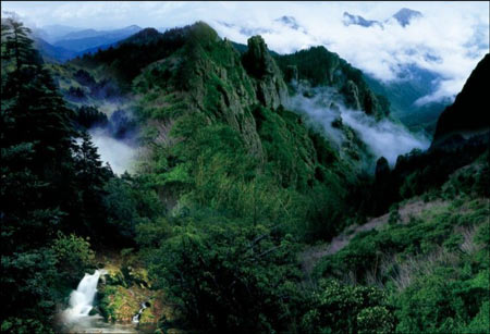 神农架山区,位于湖北、陕西、四川三省的边界,南濒长江,北望武当山,是大巴山脉和秦岭山脉交结的地方,亦是我国南部亚热带向北部温带过渡的地带.全区面积达3250平方公里,主峰太神农架高达3300米。1978年,国家决定在其中的大小神农架诸峰周围20平方米公里地带建立自然保护区,主要保护金丝猴、珙桐等珍稀植物和森林生态系统。