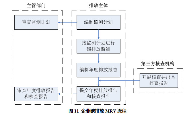 在EU ETS中,MRV制度,即监测(Monitoring)、报告(Reporting)、核查(Verification),是企业碳排放数据上报的规范。企业在申请碳排放许可时,需要在申请报告中制定一份详细的排放量监测计划,提供与监测程序相关的材料,其中必须要注明监测实际排放量的方法和频率,有关权威部门会对该计划进行审核,以确保其操作的可行性。