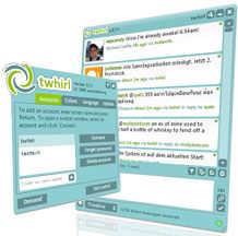 AIR软件平台的桌面社交客户端软件(也就是说您需要安装了Adobe AIR之后才能安装这个软件)。如果您对Twitter.com有一定了解,或者对国内的饭否(fanfou.com)、叽歪(jiwai.de)有些了解的话,您大概也就了解Twhirl是一个辅助性的社交软件,利用它,您不需要登陆Twitter.com就可以离线编写一些关于自己的动态(140个字符之内哦), 然后再连线发送出去,当然,您也可以一直处于在线的状态,让别人知道“你在干嘛”,同时也可以了解别人在干嘛。