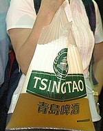 奥运会期间,老外也领略了青岛这一别样风味——《克罗地亚奥帆工作人员:"塑料袋装啤酒"太奇特》,那是8月份。当然,使用塑料不环保,而且国家也已经“限塑”了,所以,以我有限的知识猜测,青岛街头上的袋装啤酒应该会少一些,不过,限塑应该不会限掉这么一个独特的青岛文化,再说了,真的全部要改成玻璃瓶或者铝罐,没准这环境影响还更大呢!有新闻说有一部分商店提供杯子,可以重复利用,可这也不是好办法,大家说说看,“限塑令”来了,散啤酒无家可归?”有没有更好的可持续发展方法可以延续青啤的新鲜?
